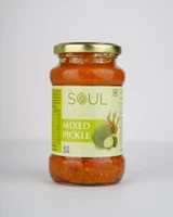 Soul Mixed Pickle is carefully blended and thoughtful curated for authentic taste. We bring together the finest assortment of vegetables and spices, ensuring each ingredient contributes to the rich and exceptional quality of this pickle. This delightful blend undergoes a meticulous process, expertly infused with aromatic spices and savory seasonings, creating a medley of flavors that embody the essence of traditional Indian pickles